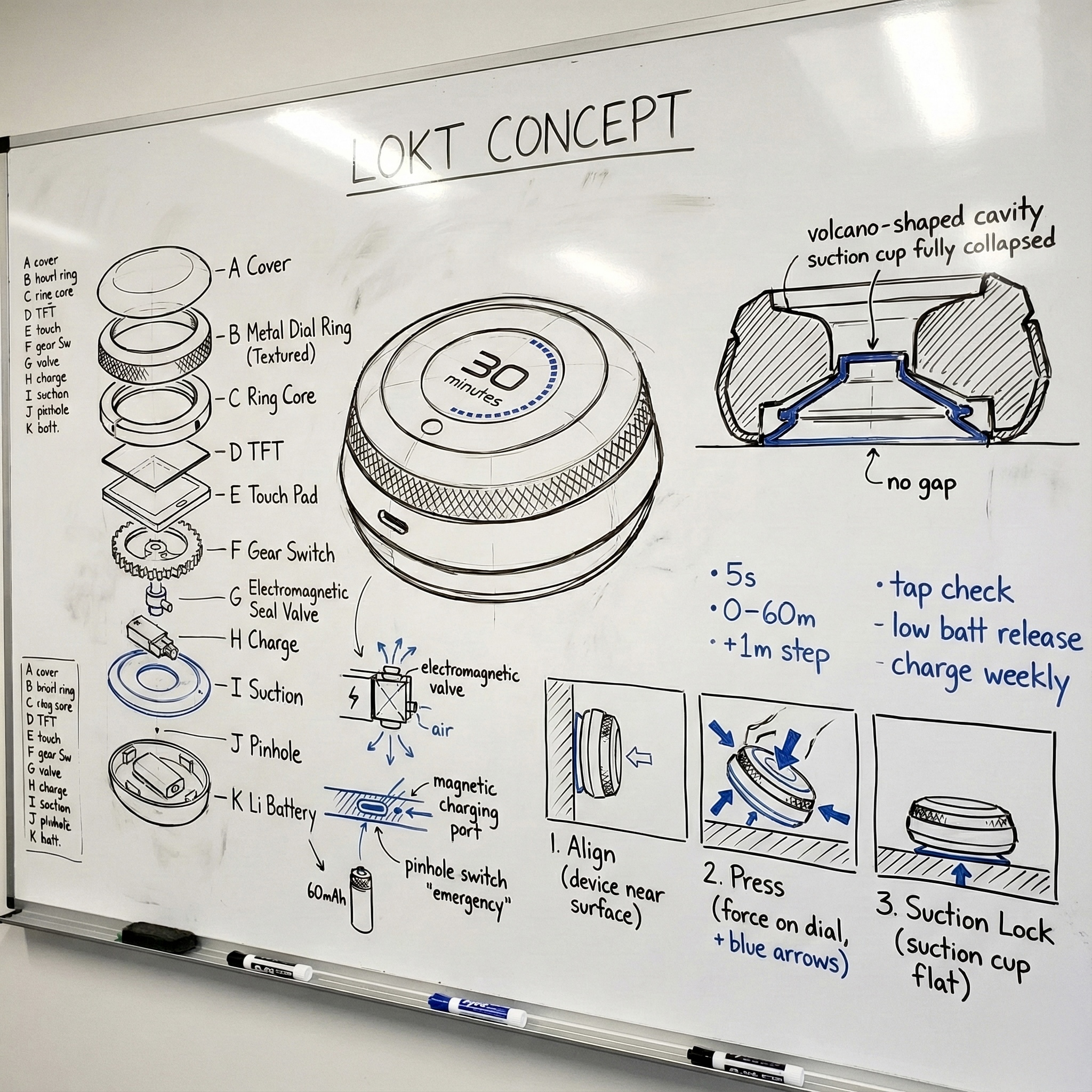 This physical solution needed to be sleek, portable, and attach without adhesive.